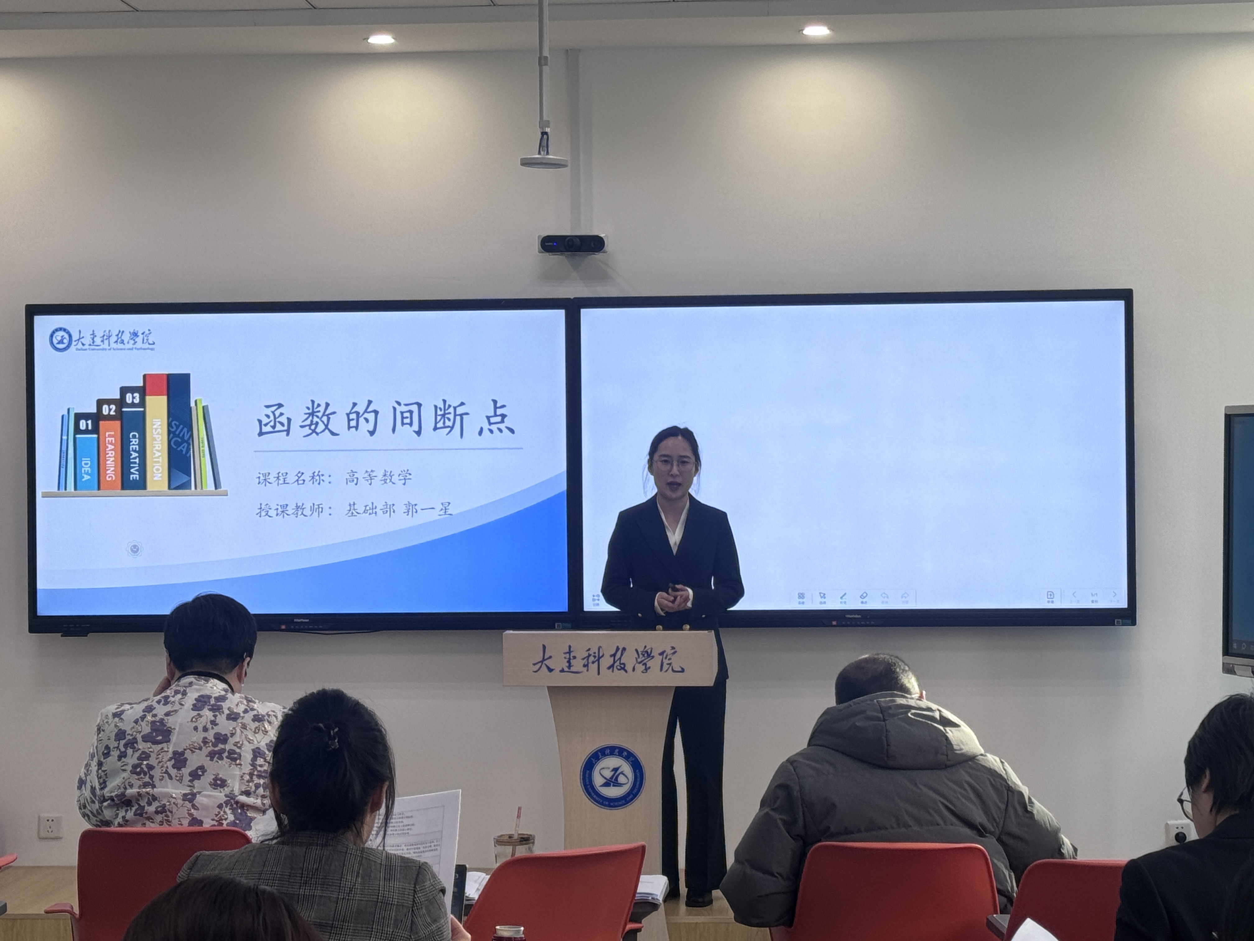 郭一星老师在备赛过程中,深入研读课程标准,精心打磨教学方案,反复推敲教学细节。说课部分展示了《高等数学》课程的简介、教学理念、教学目标、教学重难点、教学创新以及取得的成果。在授课过程中,语言生动,逻辑清晰。课堂反思部分对课程内容进行了系统的总结。她所讲授的《高等数学》中的“函数的间断点”,教学设计新颖独特,将课程思政巧妙融入课堂,充分体现了以学生为中心的教学理念;教学语言生动流畅,教态自然大方,课堂互动氛围热烈,展现了良好的课堂驾驭能力;板书设计(或课件制作)条理清晰、重点突出,辅助教学效果显著。在比赛现场,郭一星老师凭借对教学内容的深刻理解、富有感染力的教学风格以及对突发情况的从容应对,赢得了评委专家的一致高度评价,最终以总分名列前茅的优异成绩斩获一等奖。