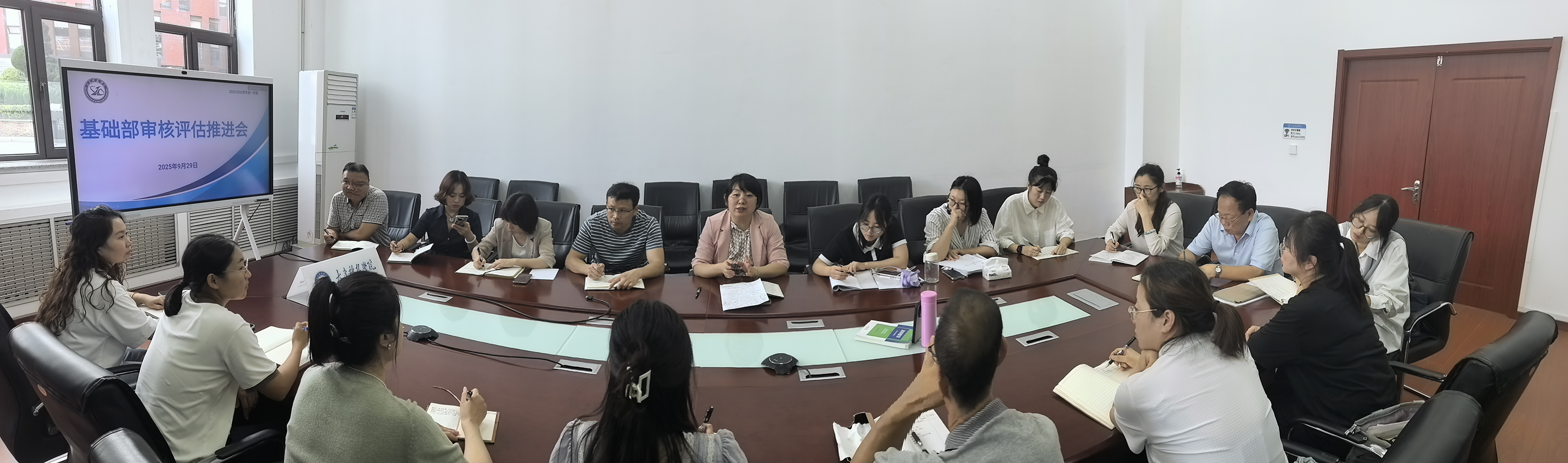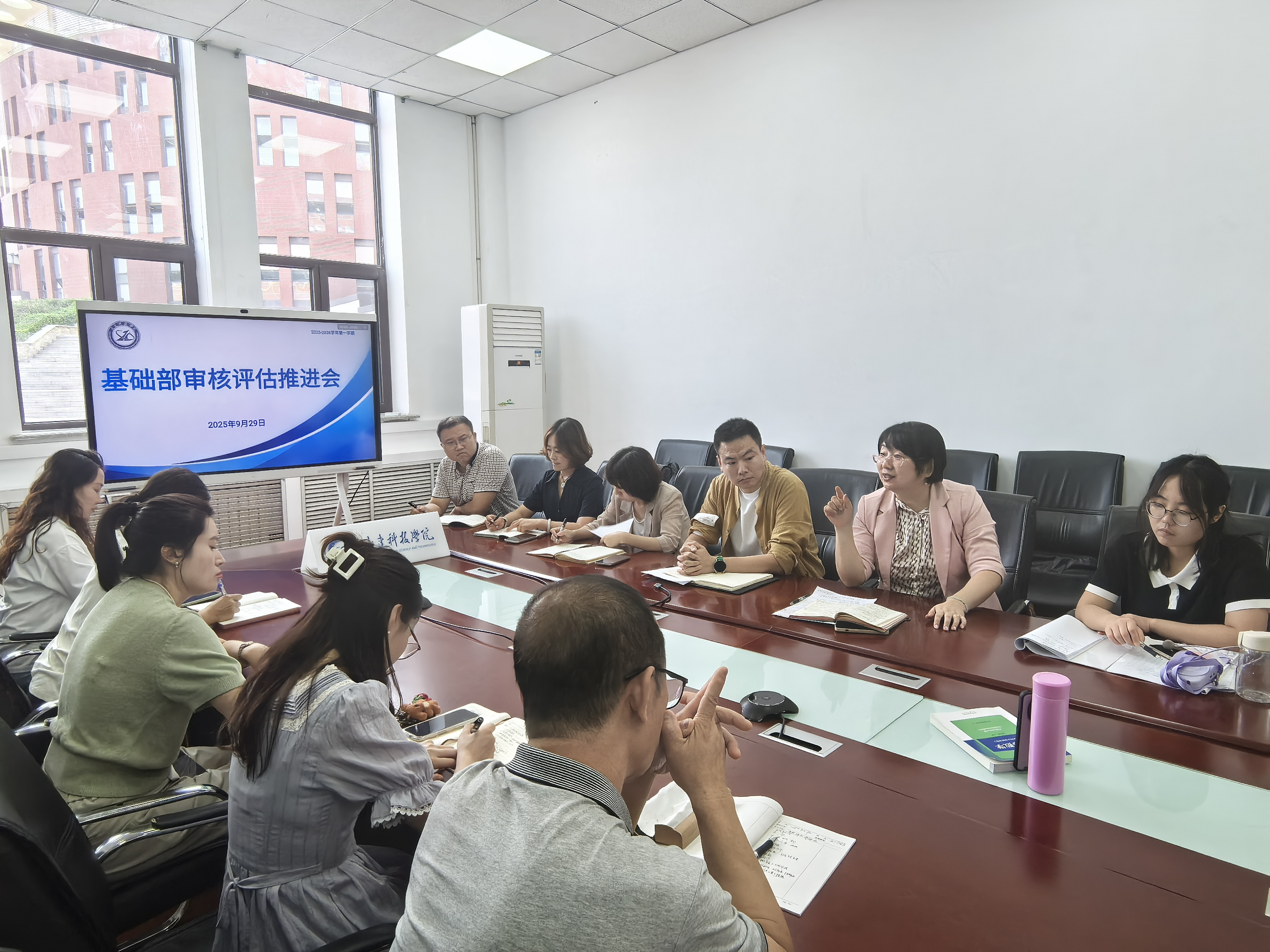 为扎实推进审核评估各项工作落地见效,确保顺利完成评估目标任务,9月29日15:00,基础部在 E1会议室召开审核评估推进会。基础部领导张凤主任、王飞副主任出席会议并讲话,各教研室主任、办公室主任级全体教师参加会议。