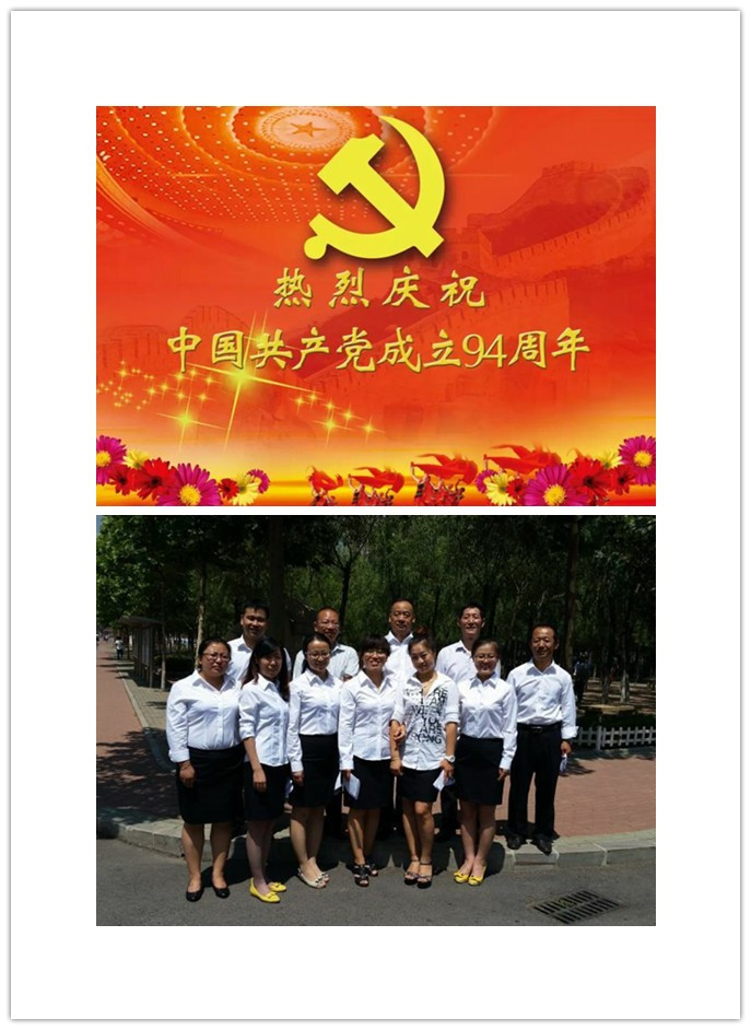 今天,基础部党总支全体党员参加了中国共产党成立94周年暨“重温入党誓词,红歌献给党”主题教育活动。我们面对党旗,举起右手,在主持人的引领下,朗朗诵念入党誓词,誓词在体育场上空回荡。我们再一次得到了心灵的净化和升华,为人民服务的光荣感、责任感和使命感进一步增强。