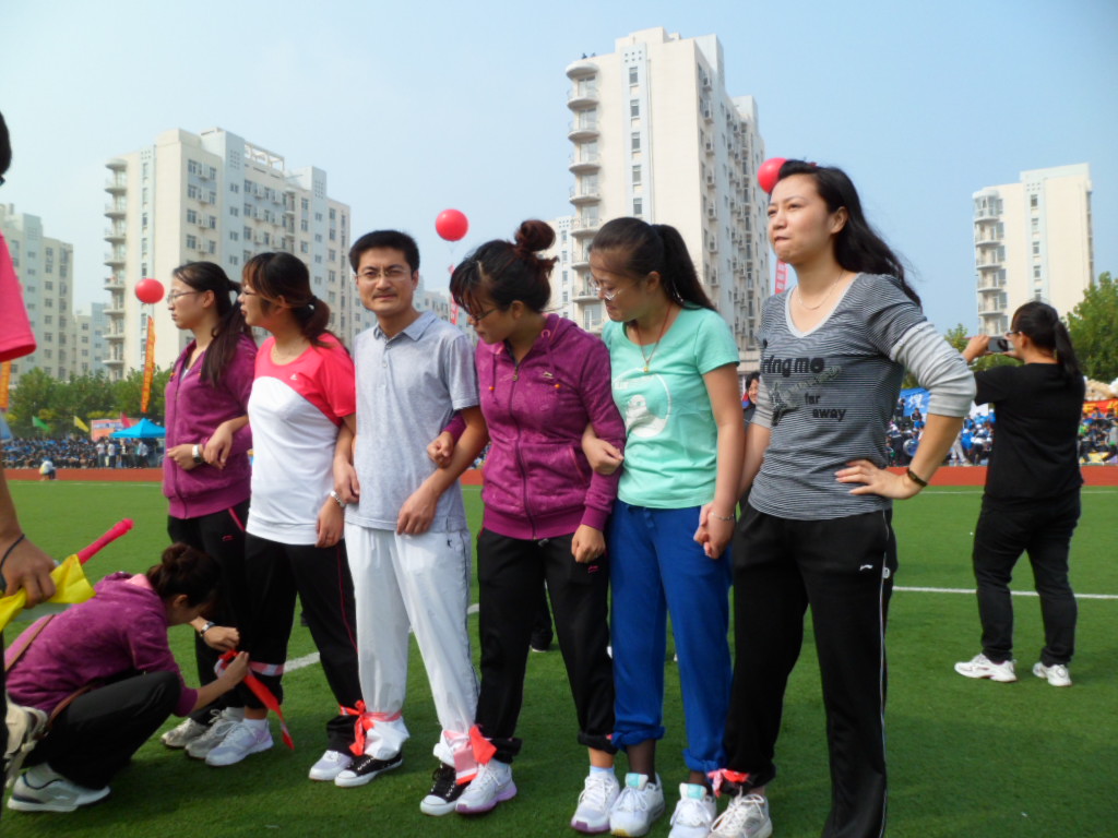 我部教师克服各种困难,在基础部主任张凤的带领下,满怀激情地参加了所有的趣味项目。由于我部体育组全部老师均需担任学生运动会的裁判工作,使得我部能参加运动会的人数总共才十二人,这就需要我部的十二老师几乎人人都要参加每一个趣味项目,非常劳累辛苦。但是,我们基础部老师还是配合默契,行动敏捷、团结、拼搏、斗智斗勇,特别是在穿麻袋接力在比赛中获得第三名的好成绩。