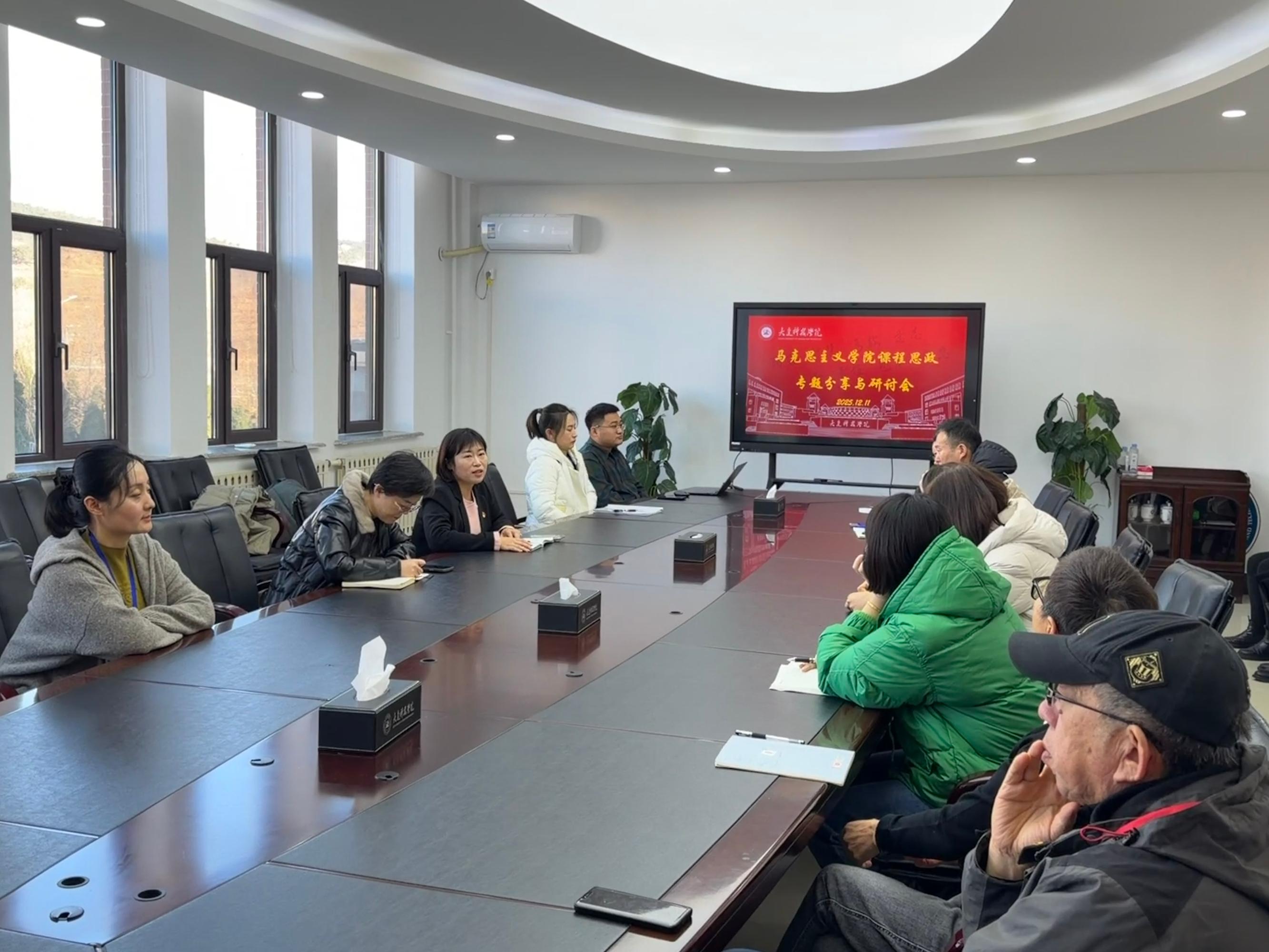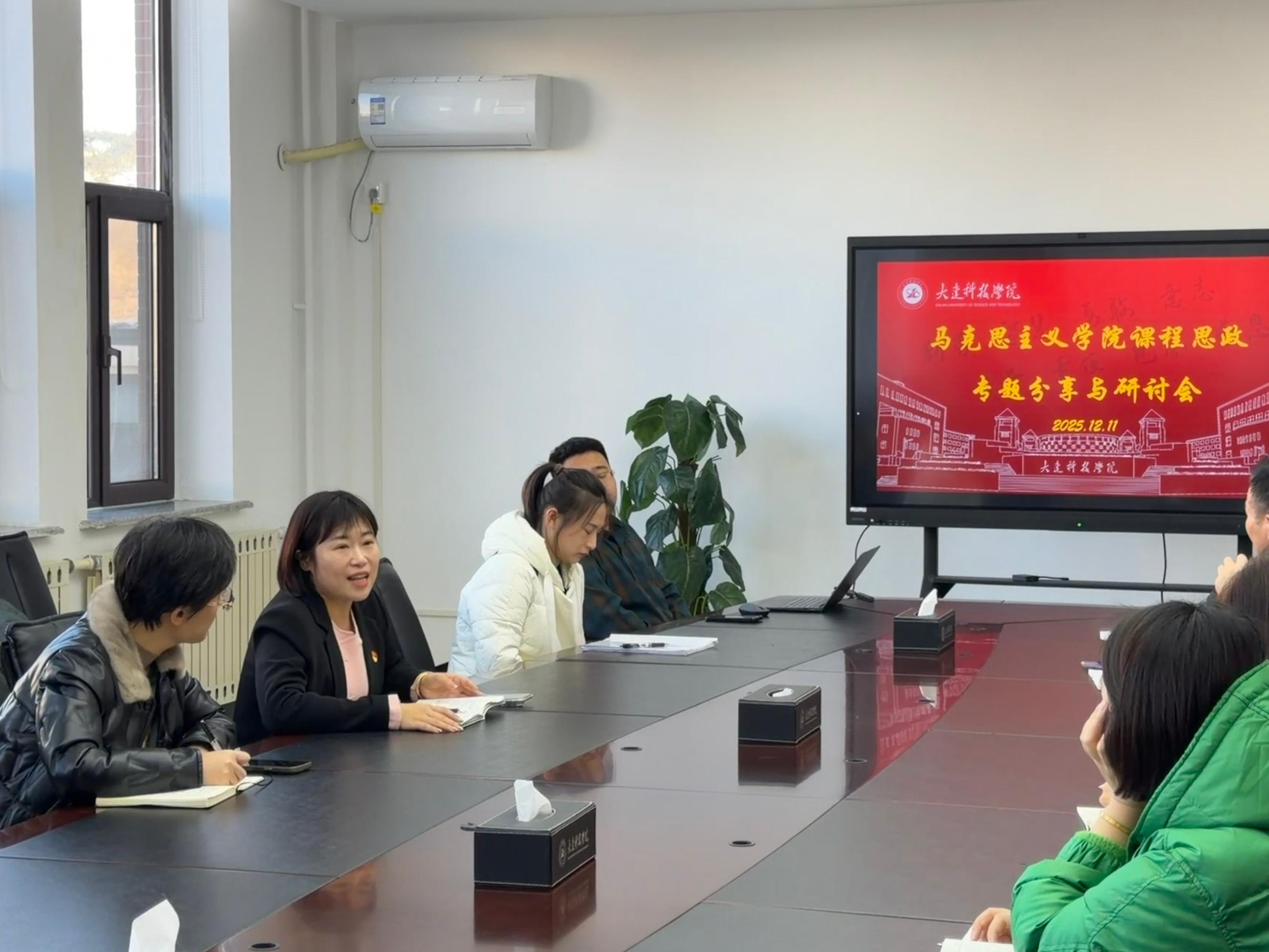 为深入贯彻习近平总书记关于思想政治理论课的重要指示精神,落实立德树人根本任务和“三全育人”教育理念,大连科技学院马克思主义学院于2025年12月11日召开“课程思政专题分享与研讨会”。马克思主义学院副院长郑旭主持会议,会上五名优秀教师代表发言。
