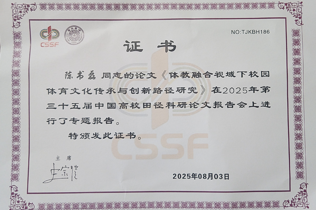 受邀参加第三十五届全国高校田径科研报告会并做专题报告;论文《高校智慧体育场馆建设与运营研究》在第五届全国学校智慧体育科研论文报告会进行专题报告。