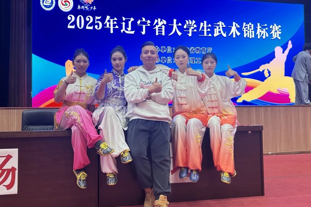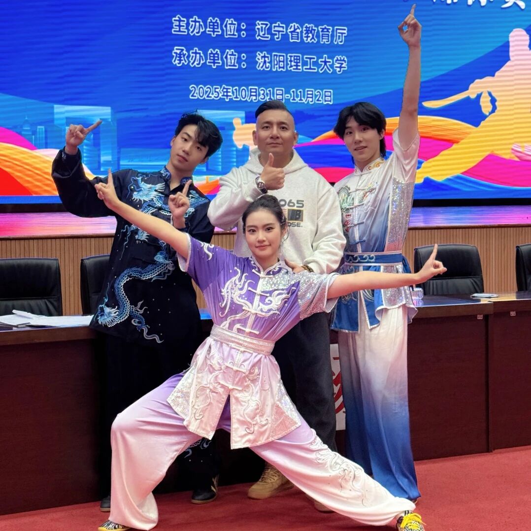 近日,由辽宁省教育厅主办、沈阳理工大学承办的2025年辽宁省大学生武术锦标赛圆满落幕。本次比赛共有来自大连理工大学、辽宁师范大学、东北大学、辽宁科技大学等33所高校,共298名运动员参赛。我校武术队由体育部李明老师担任主教练,带领12名运动员征战赛场。凭借扎实的功底、精湛的技艺和顽强的拼搏精神,在激烈角逐中脱颖而出,最终斩获3枚金牌、8枚银牌、3枚铜牌的优异成绩。